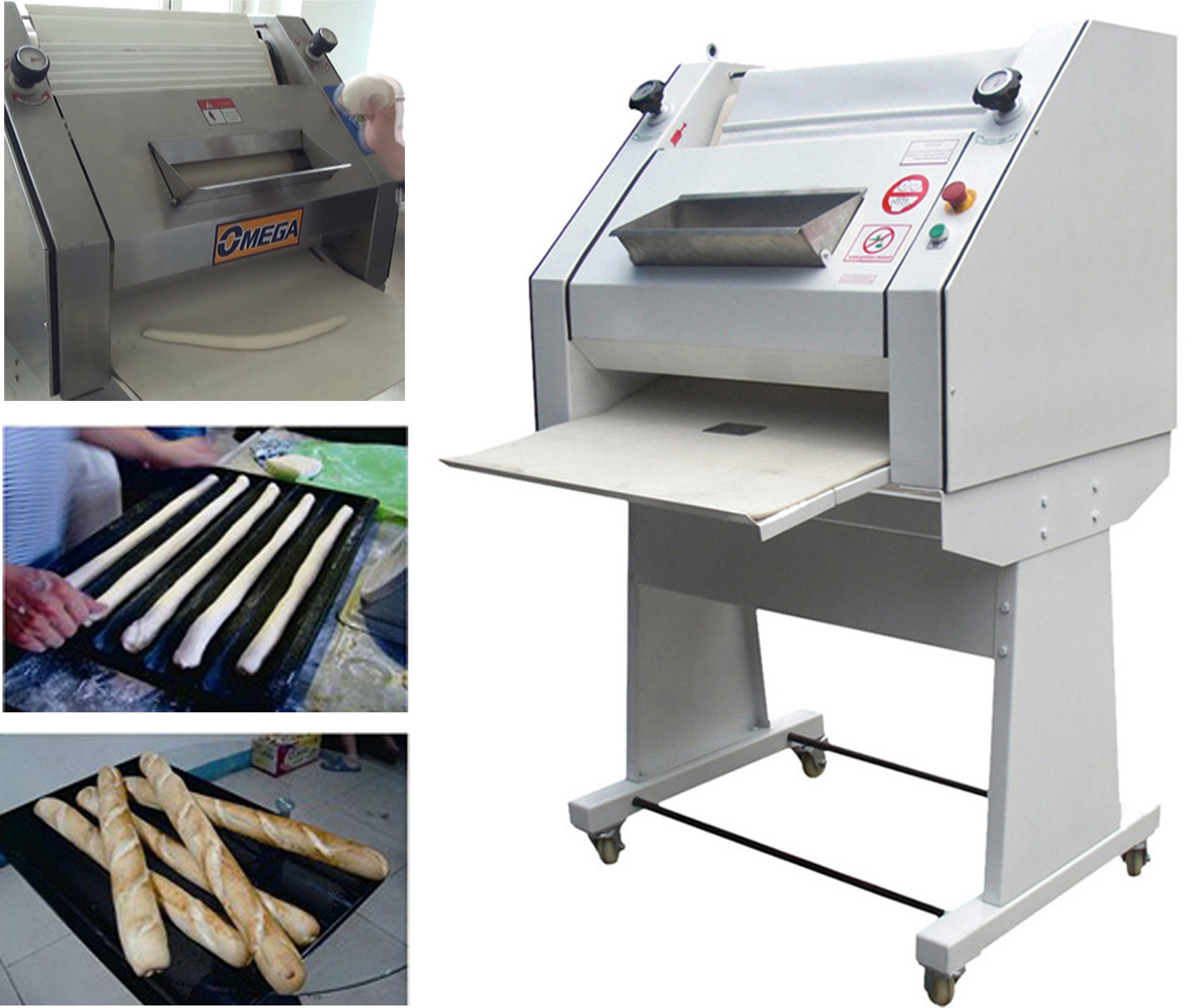 Take the each ball feed to the baugette moulder machine to make the dough moulding